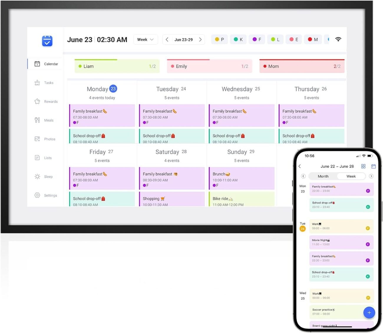 This smart calendar offers an extensive meal planning feature, enabling users to set up weekly menus for breakfast, lunch, dinner, and snacks in an intuitive interface. This can be particularly beneficial for families who want to ensure that their meals are balanced and planned ahead of time. It helps to avoid last-minute rushes to the grocery store or unhealthy food choices.