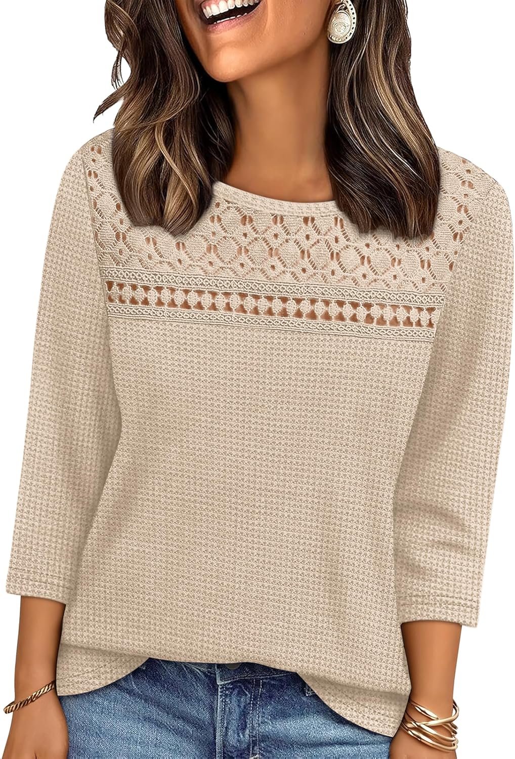 OFEEFAN Women’s Blouses Dressy Casual 3/4 Length Sleeve Lace Waffle Knit Tops: A Comprehensive Review